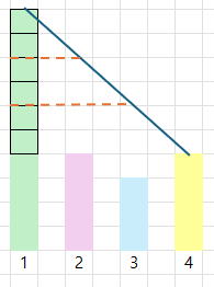 1과 4 사이의 높이 차이는 6이며 사이의 빌딩은 2개이므로 아래와 같이