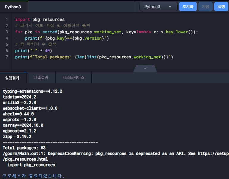 # 패키지 정보 수집 및 정렬하여 출력